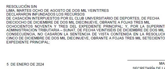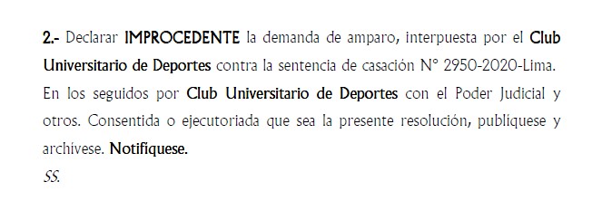 El 07 de febrero de 2024 el Club Universitario de Deportes interpuso Demanda de Amparo contra el Poder Judicial con el objeto que se declare NULIDAD de la Sentencia de Casación No. 2950-2020-LIMA del 08 de agosto del 2023 en la que se había declarado INFUNDADOS los recursos de casación mediante resolución S/N.