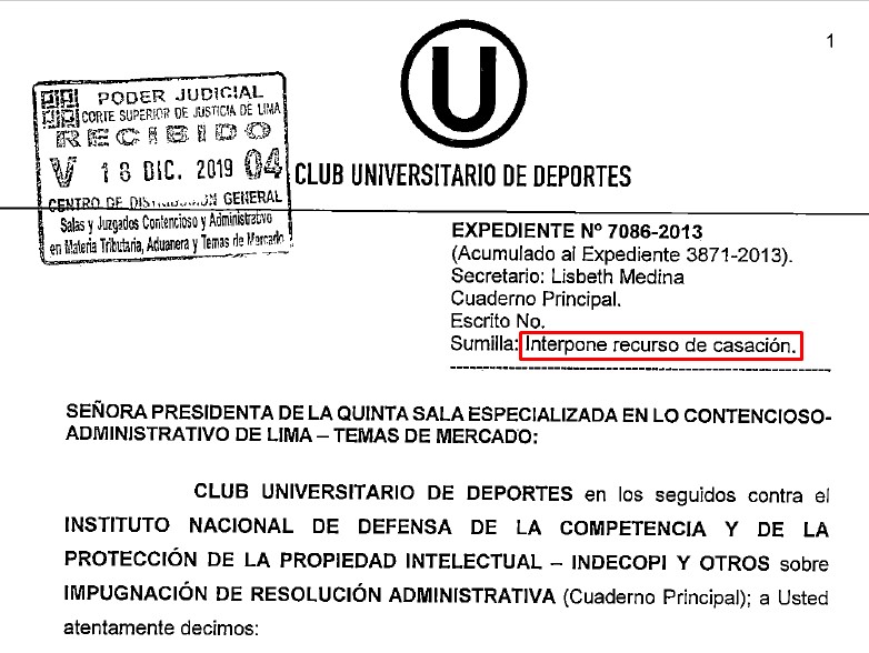 1. INDECOPI DECLARÓ EL INICIO DEL PROCESO CONCURSAL DEL CLUB UNIVERSITARIO DE DEPORTES