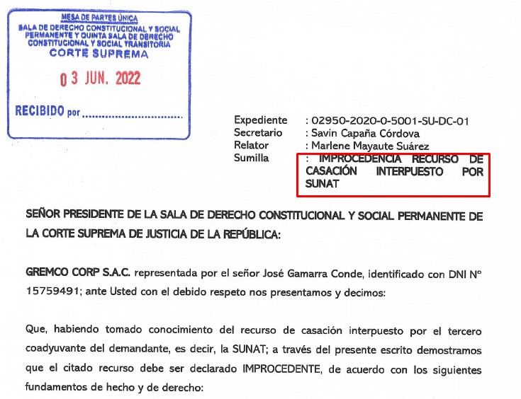3. INDECOPI RECONOCE CRÉDITO DE GREMCO CORP
