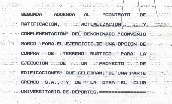 El 24 de Febrero de 1999 se suscribe una segunda adenda al contrato en la cual GREMCO establece que el monto total de la obra asciende a $42.9 millones, lo cual será ratificado por un comité de ingenieros, en cuyo caso el Club aceptará reembolsar a GREMCO hasta un límite de $28.9 millones con publicidad estática, incluyendo intereses TAMEX al rebatir y el impuesto general a las ventas, en el plazo que resulte necesario de acuerdo a los rendimientos de la publicidad estática.