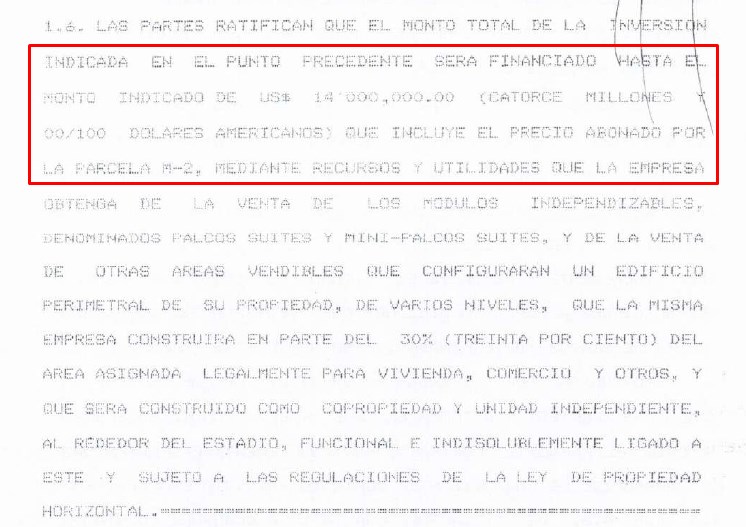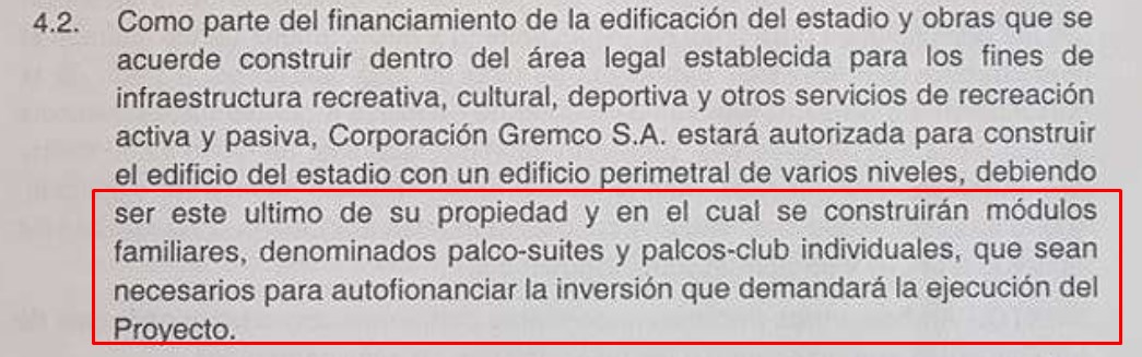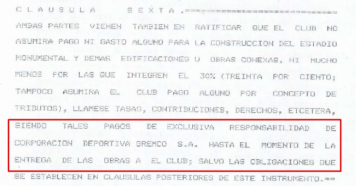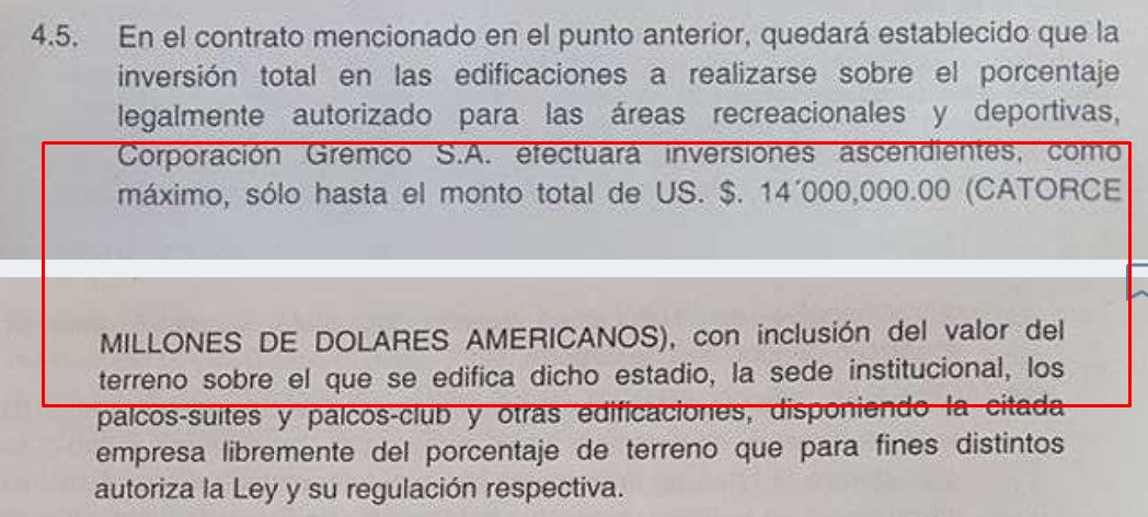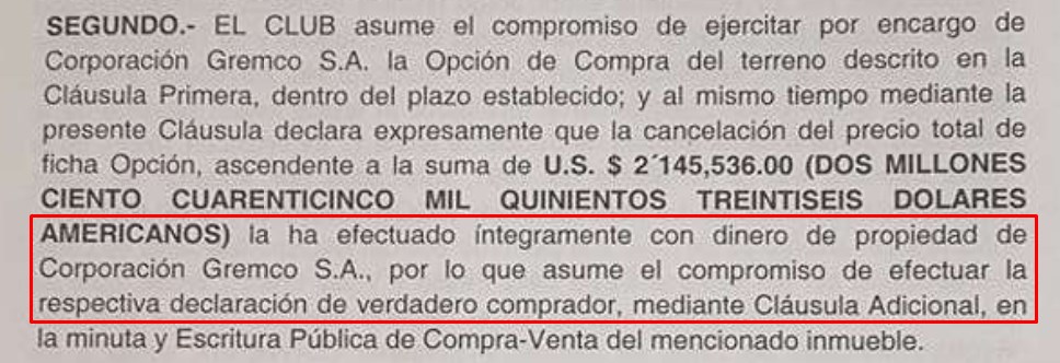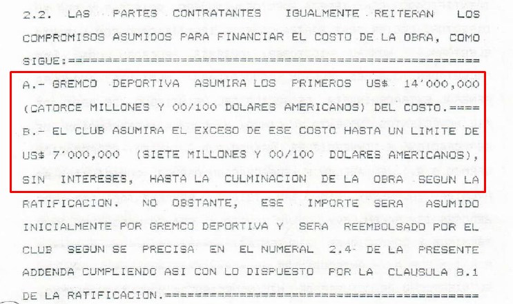 - GREMCO asumirá plenamente los costos en exceso hasta $21 millones (CLÁUSULA OCTAVA). Reembolsable por el Club.